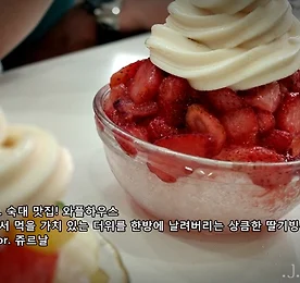 [숙대 맛집/숙대입구 맛집] 줄서서 먹을 가치 있는 상큼한 딸기빙수 # 와플하우스 [숙대 맛집/숙대입구 맛집] 줄서서 먹을 가치 있는 상큼한 딸기빙수 # 와플하우스 무더워를 한방에 날려 버릴 수 있는 시원한 빙수 한 그릇의 매력은 누구에게나 특별할 것 같다는 생각이 듭니다. 빙수를 한 숫갈 입에 넣는 순간 입안에서 퍼지는 시원함에 온 몸으로 퍼져 나가면서 행복하게 만들어 주니까요. 오늘은 더위를 한 방에 날려버릴 수 있는 온몸을 서늘하게 만들어 줄 맛있는 딸기빙수를 소개해 드릴까 합니다. 숙대 맛집! 와플하우스는 숙명여대 대학생들은 물론 멀리 찾아와 먹고 가는 사람이 있을 정도로 유명한 곳이랍니다. 빙수를 좋아하는 분들이라면 아마 모르는 분들이 없을 정도로 딸기빙수는 엄청난 매력을 가지고 있으니까요. 줄을 서서 기다려야 먹을 수 있을 정도로 인기가 많은 곳이지만 기다려서 먹을 충분한 .. 더보기 이전 1 ··· 717 718 719 720 721 722 723 ··· 1194 다음